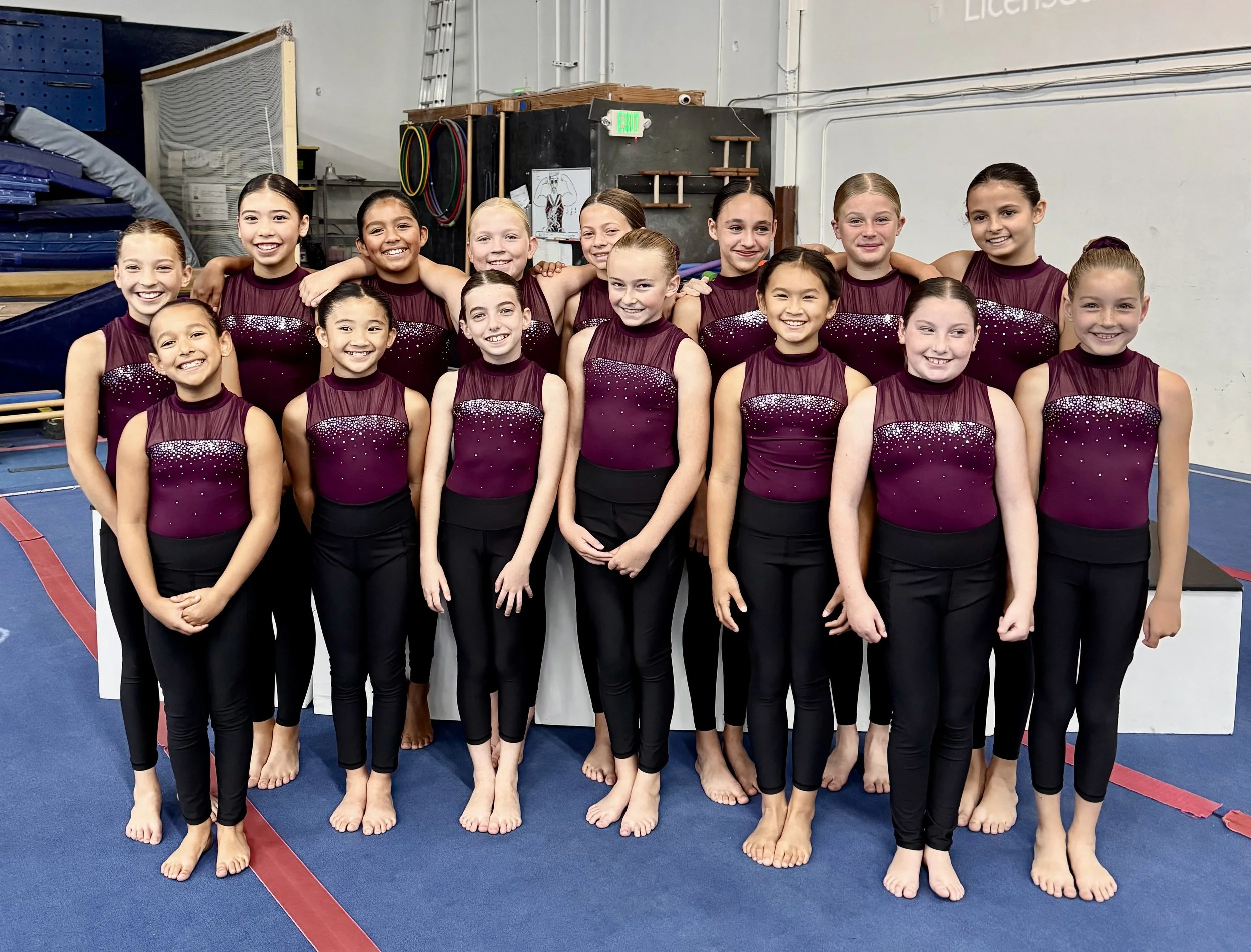 /THE LEVEL 3 NOVATO GYMNASTICS TEAM AT THIER FIRST MEET OF THE SEASON